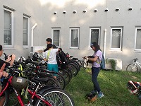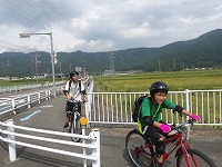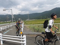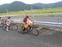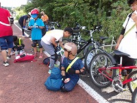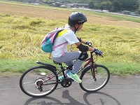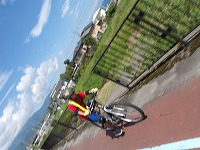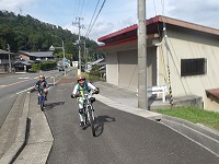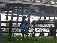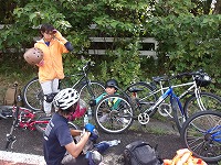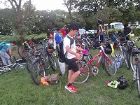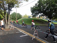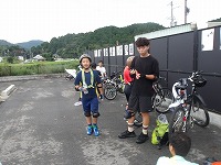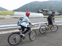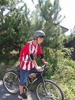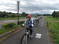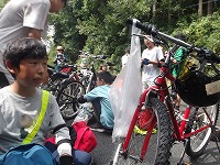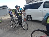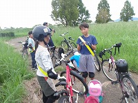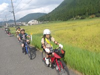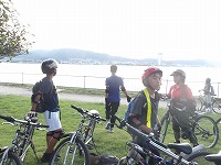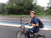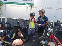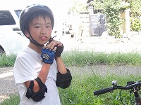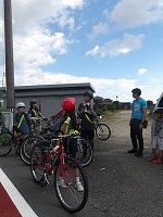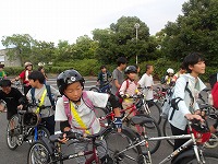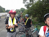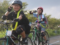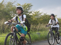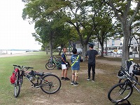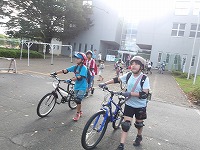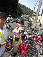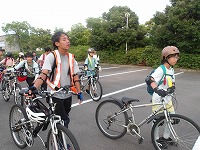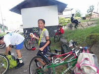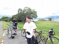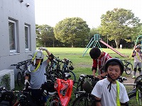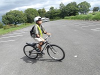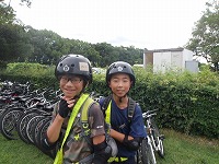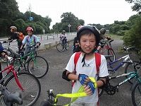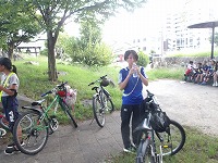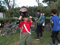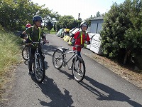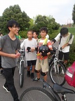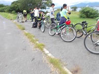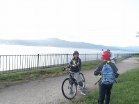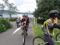 楽しみにしていた、びわこ一周チャレンジがはじまります。 | 自転車に乗って、ギアやブレーキの確認をしたら、 | さぁ、いくぞ! | ||||||