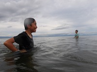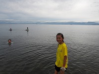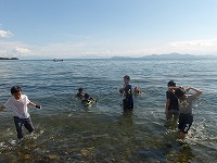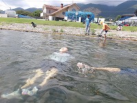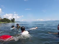 滋賀は、もう稲刈りが始まっておりました。 | さぁ、出発 | 実は、こちらのチームのカメラが故障していて、写真がないのですが、もうすでに2回湖に入っています。 | ||||||