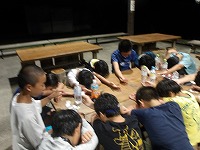 ご飯を食べたら、恒例の手作り人狼大会 | なんと8時半就寝でした。 | |||||||