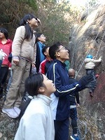 | さぁ、ひさしぶりのチャレンジ隊 | 今日はロッククライミング | 頑張れ〜 そこだそこだ! |