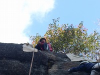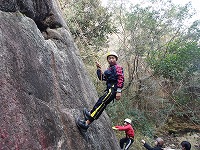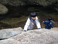 | 岩場のベンチ?も満喫し | 目の前の沢でも水遊び | 登っている後ろでは、沢遊びしているメンバーもいて、 | ||||||