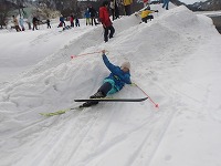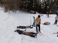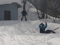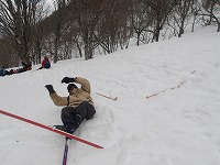 | 恥ずかしがらずに、今日はどんどんこけましょう! | スタートと同時に、みんなこける。 | アルペンスキーをしたことがあっても、こけるのです。 |