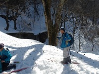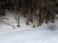 | 下山です。 | 木々の間をこれまたジグザグと降りれる場所を探して、滑り降りるのです。 | これがまた転ぶ転ぶ。 |