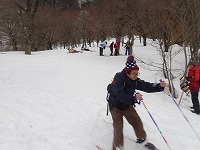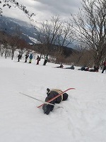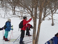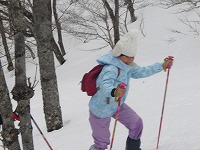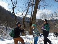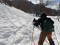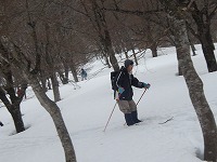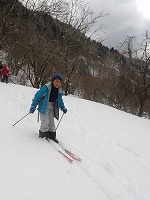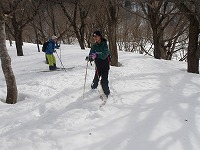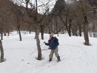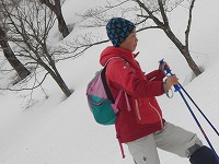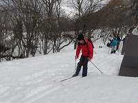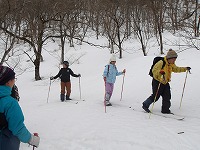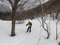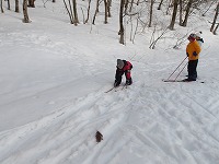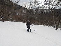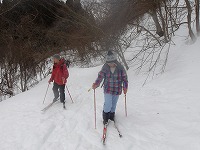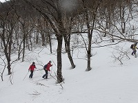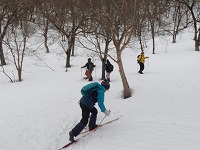 | これこそ、クロスカントリースキーの楽しみのひとつです。 | みんななぜか、ルートをとるのが上手です。 | 上がってくるメンバーを待っている間、ちょっと滑れそうなところで、滑ってみる。 |