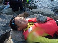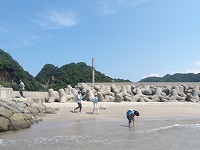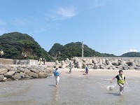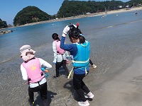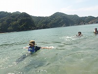 さっそく海へ | うん、なかなか気持ちがいいぞ。 | 少しずつじわじわと、あそびを拡げていく子ども達。 |