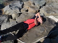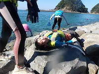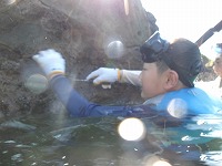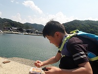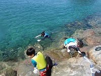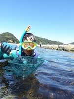 カメノテみつけた! | 小さなカワハギとフグの赤ちゃんまで捕まえておりました。 | さぁ、今日は、もうこれくらいで施設にもどりましょう! |