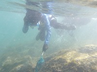 よくよく、海の中も見えていて、タコ発見。 | タコがいるなんて!嬉しい発見。 | ウミウシや、かえるうお、サンバソウまで網で捕まえて、 |