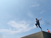 本当に気持ちがいい海なのです。 | 何度も飛んで、 | 気持ちすっきり!心が開くことで、仲間との距離もぐっと縮まった2日間でした。 |