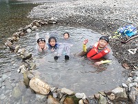 ジュニアコース3回目は、おんせんほりキャンプ! | おんせんほりと、なんと、秋の川あそびに挑戦です。 | 河原をほると温泉が出るということで、 |