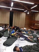 今日は、はじめてのテント泊にも挑戦する予定でしたが、 | 雨も降っており、山間部で気温も低いこともあり、濡れてしまうと体温が戻らないこともあるため、 | キャンプ場にある広間をお借りすることとしました。 |