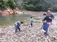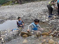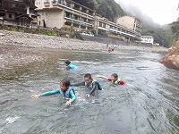 でも、それくらいいい温泉だということだね。 | 今日ももちろん、川あそび | どんなに冷たくなってもへっちゃらです。 |