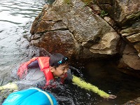 ふぅ〜あったまる〜 | そのまま、岩伝いに、湯の穴を探していくと | 激熱の湯の穴があって、底を中心に川あそびがヒートアップ |