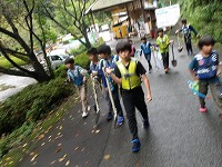 一夜明け、雨も止み、キャンプ場の方に御礼を言って、今日は歩いて自分隊tの温泉へ | みんなの元気の良さと、すこやかさに、キャンプ場の方は関心されておりました。みんな明るい!元気! | 自分たちが作った温泉に、外国の方が入っておられて、嬉しいやら、戸惑うことも。 |
