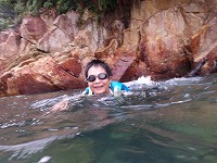 ゴーグルをつけて、ずっと温泉の中を覗いておりました。 | 食べ物ではありませんが、自然の恵みをたっぷりいただいて、 | 自然の中に抱かれて、遊んだような2日間。 |