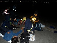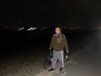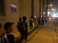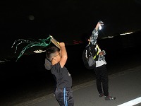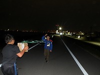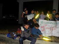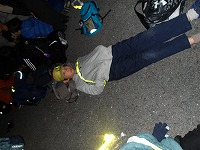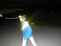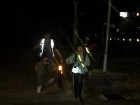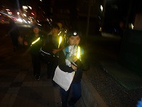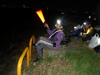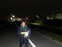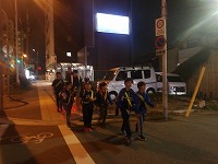 | 太陽が沈むと、あっという間に夜の雰囲気。 | 15キロ地点をすぎると、河川敷の工事区間となるため、市街地を歩きます。 | 街中なので、信号があったりで、なかなか自分たちのペースでは進めません。 |
