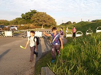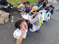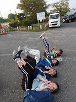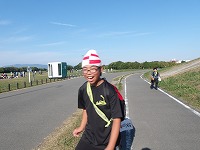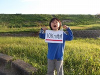 | おーい、ここが10キロだったぞ〜 | ふぅ〜 | 思っていた以上に早くついて、自分たちが一番びっくり。 |