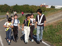 | 距離は15キロ以上歩いているのに、子ども達は、元気元気。 | 明るい笑い声、お話がつきません | そうこうしているうちに、 |