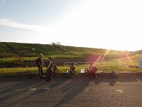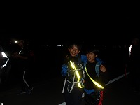 | そして、10キロ地点スタート。いってらっしゃーい!またあとでね〜! | 行動食は、歩きながらパクパク食べます。 | 日没まで30分ほどです。、 |