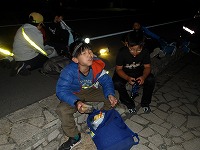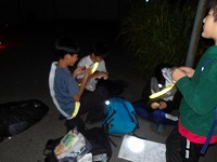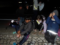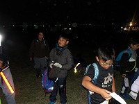 | もくもくと歩きます。 | 楽しみにしていた夜の時間 | 真っ暗な中の子ども達の冒険が始まります。 |