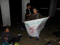 | 15キロ地点 | 夜ごはんを食べておりました。 | おれたち、このままやったら、めっちゃ早い時間についてしまうでぇ〜 |