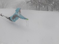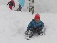| するとスタッフが腰まで雪にうもりながら突進。 | そのあとを歩いたら、楽ちん。 | そうだ、たんけんにでかけよう!たんけんいくひとおいで〜 |