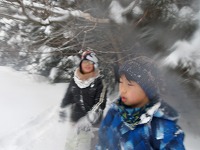| ぼくたちは、かまくら | 昨日リトルコースのメンバーが作ったかまくらを、雪の中から発掘 | もう、雪がたくさんなのです。 |