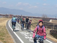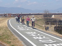 | 道が細くなったり、太くなったりするときも、自分たちがどけるよ〜自分たちがとまるよ〜!! | みんな安全運転で、折り返し地点を目指します。 | 流橋まであと、3キロほどです。 |