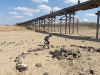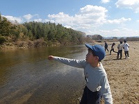| 石で石を割ったり・・・。 | そのうち、さっき橋の上からみた川へ行こうということで、川へ。 | 水切りをたくさんして、これでもか!というくらいまったりした時間を過ごして、さぁ、復路です。 |