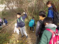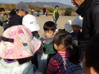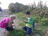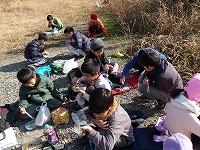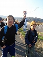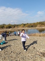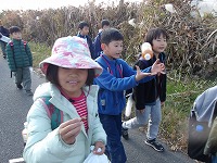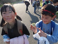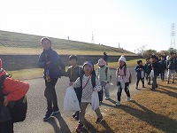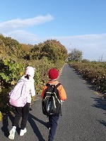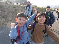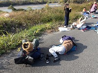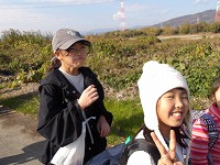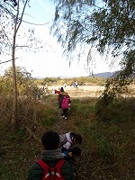| 大丈夫やろうと、みんなはのんびり進んでいきます。 | 楽しくお話しながら歩きます。 | 河川敷なので、途中自転車がくると、前から後ろから「自転車がきたよ〜!」と大きな声でさけんだり、 |