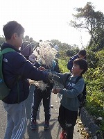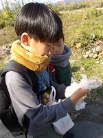 | 中を割ってみたら種がいっぱい入ってました。 | カラスウリをたまにしたカラスウリ鉄砲も。長い長い寄り道回り道ありの登下校のよう。 | 全員、一人一人頑張って、頑張れて、無事ゴールの淀駅に到着することができました。 |