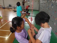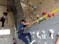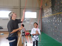見ていて覚えた装備のつけかえを手伝ったり、 登っているメンバーを応援したり。 スタッフも、頑張って登っている子どものため、頑張ってビレーします。