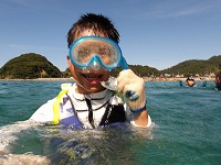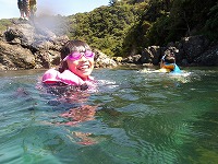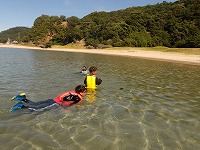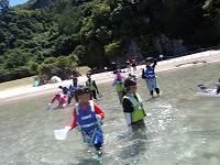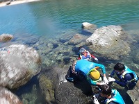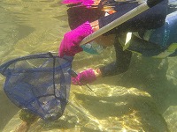 水がとってもきれい。 | あみをかたてに、さぁ出発! | 水の中を覗きながらおよいでみたり、 |