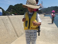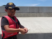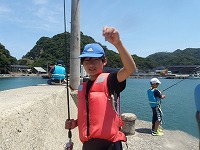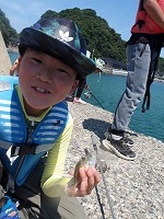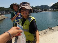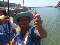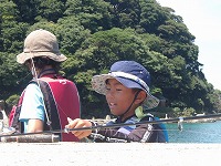 施設での一泊も無事に終えて、朝から元気元気。 | 今日は、釣りに挑戦です。 | しかけは、一本張りと、サビキ釣り。 |