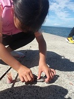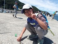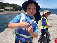 最近の異常な暑さは、釣りに行く前に水を頭からかぶって、気化熱を利用した天然クーラーで問題なし。 | 海風が気持ちいいなか、釣りに挑戦した子ども達でした。 | さぁ、夏が始まりました。 |